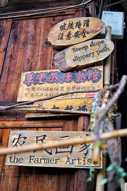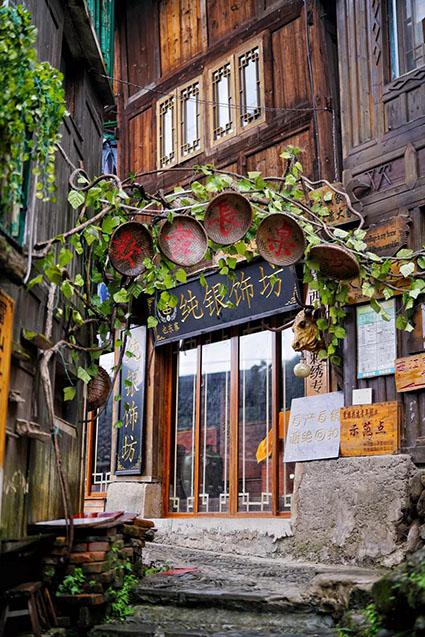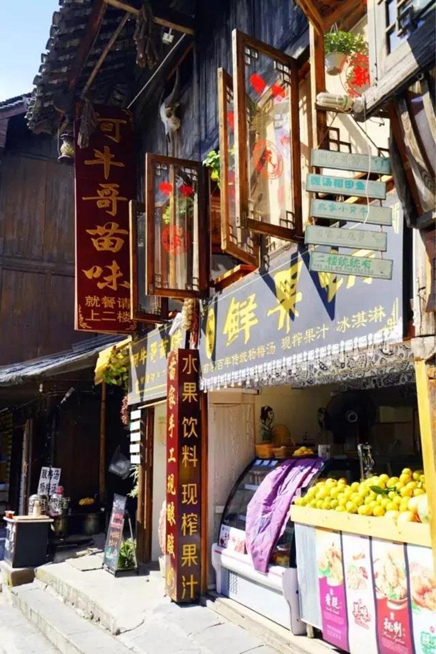 沿着寨子古道往上走,苗家原汁原味的吊脚楼鳞次栉比、衔首连尾而建,一路上你能发现不少的奇妙,有着苗族原住民的日常生活气息,每一个普普通通的小门面都很值得你前往探究。