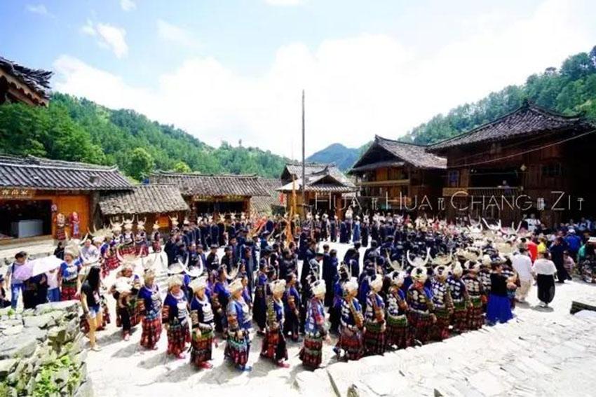 而且苗王的住所也在这里,叫【鼓藏堂】,在也东寨的最高处,堂里还供奉着祭祀用的鼓。