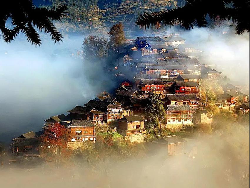 微风轻拂,“天下第一苗寨”西江,填满视野。看那古色的吊角木楼磷节批次相拥而居,中有翠树绿荫,边有阡陌纵横,炊烟袅袅,鸡犬相闻,寨前的白水河曲折如练在晚霞的余晖下泛起彩色的波光。依山而立的西江苗寨是一幅让千万人观赏就有千万种感觉的画卷。这是哪一位能师巨匠的千古佳作?你是否能读懂她的妙语佳句?