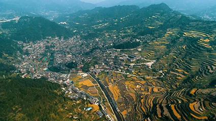 西江千户苗寨位于贵州省黔东南苗族侗族自治州雷山县东北部的雷公山北麓,这里四面环山,重峦叠嶂,梯田依山顺势直连云天,白水河穿寨而过,将西江苗寨一分为二。