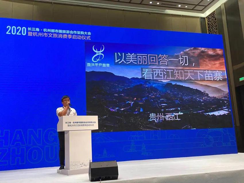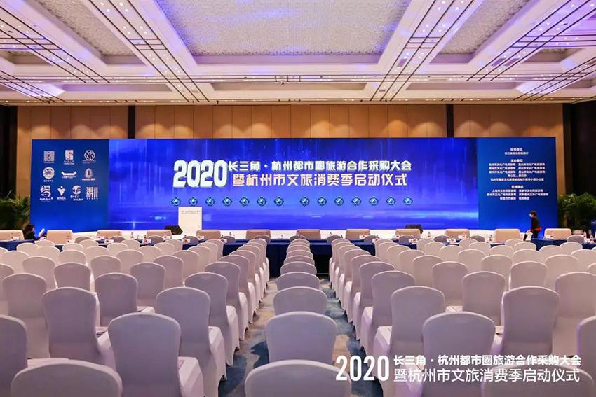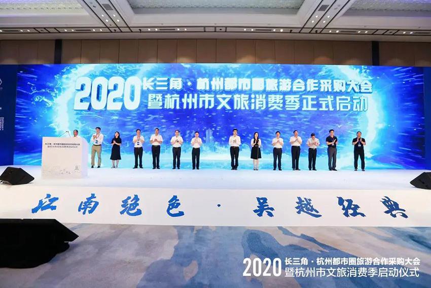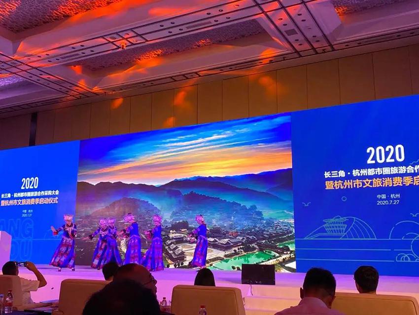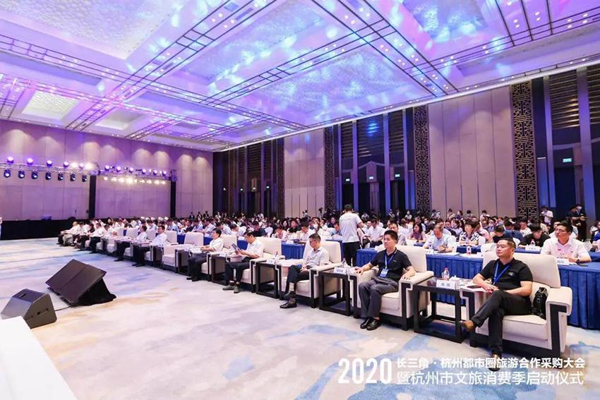 在国家恢复跨省旅游业务之际,为了加强长三角城市文化旅游合作,促进文化旅游市场复苏、振兴,推动企业转型升级,提振文旅消费信心,7月27日,杭州市文化广电旅游局联合杭州都市圈6城市和上海、南京、苏州等长三角城市,在杭州国博中心举办“长三角•杭州都市圈旅游合作采购大会暨2020杭州文旅消费季启动仪式”。浙江省文化和旅游厅副厅长王峻,杭州市委常委、宣传部部长戚哮虎,杭州市政府副秘书长程华民,长三角·杭州都市圈九个城市、黔东南州文体广电旅游局携州内金牌景区,以及省内相关城市旅游企业(旅行社、景区、饭店、民宿等)代表,杭州文旅消费季项目单位代表,“文旅赋能乡村6+X”项目合作单位代表,以及在杭中央、省、市媒体代表等共300余人参加了本次活动。