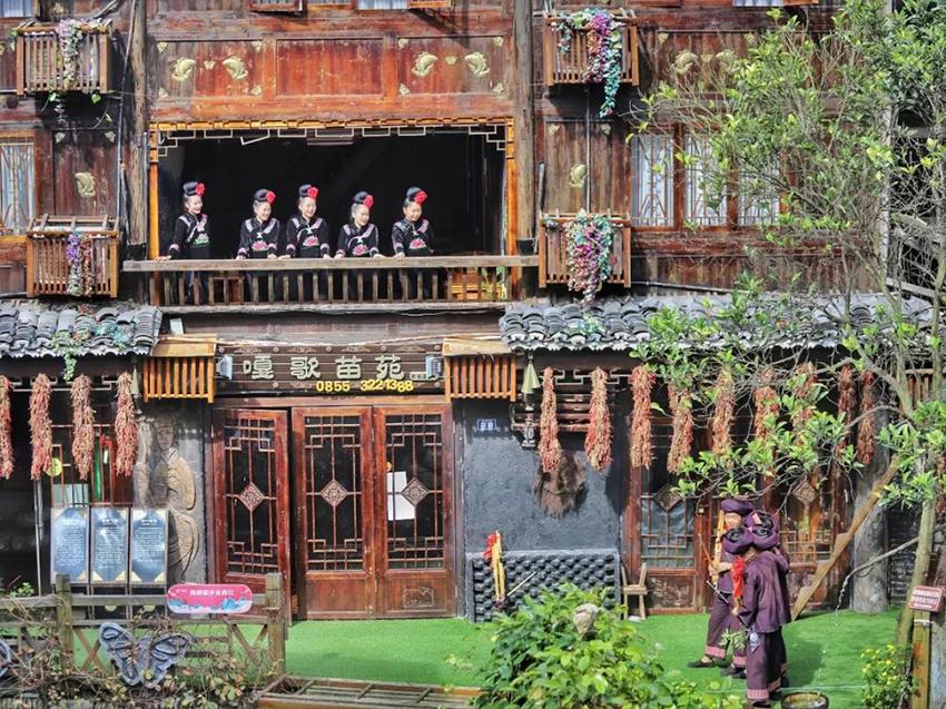 嘎歌古巷内,一场酒歌盛会正在上演,身着传统服饰的苗族老人以唱古歌的方式来庆祝属于苗族自己的节日,一边歌唱一边向客人敬酒,好不热闹欢腾。苗族古歌老人说 “苗族同胞重酒不重菜,酒是友谊的象征,唱的是表达真诚待客的谦和之辞”。