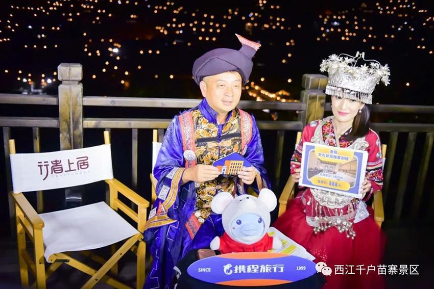 (图为携程集团董事局主席在西江千户苗寨观景台进行BOSS直播)