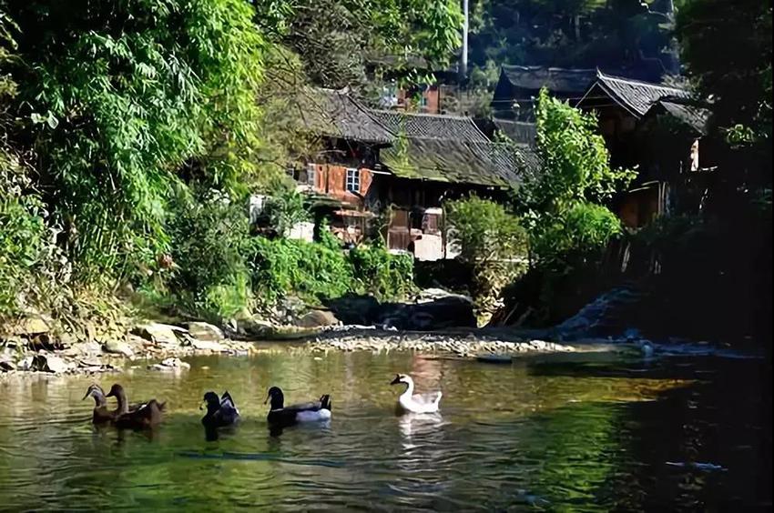 郎德是一处比较安逸的苗寨,2008年奥运圣火走过的地方,保留了很多原生态气息,四面群山环抱,茂林修竹,衬托着古香古色的吊脚楼,蜿蜒的鹅卵石路在屋檐间时隐时现,房屋上还挂有玉米串,很有古香古色的味道。寨中道路、院坝及各户门庭,都用鹅卵石或青石镶砌铺就。