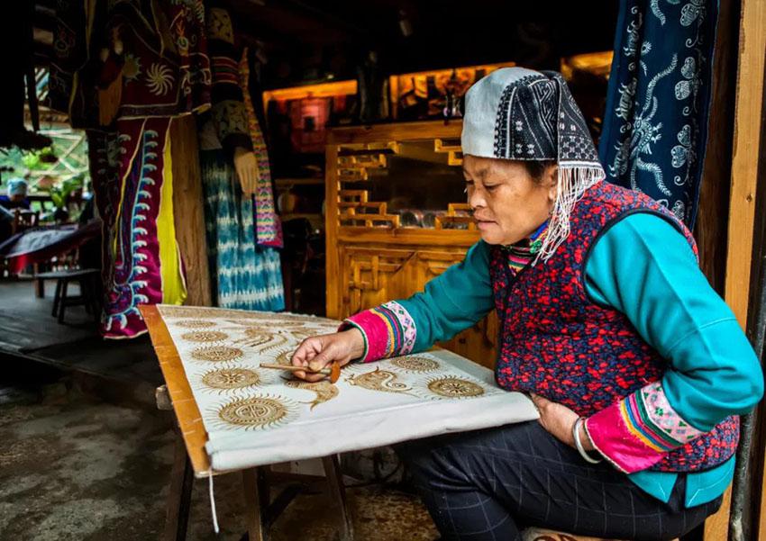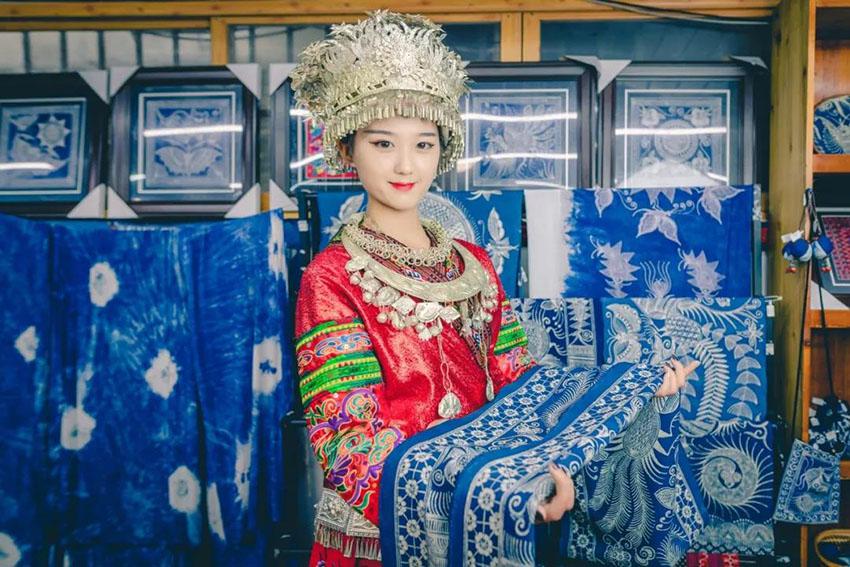 苗族蜡染是苗族传统技艺的瑰宝,素以做工精细色调素雅,内涵丰富而闻名于世。苗族蜡染所用的传统染料主要是植物,是纯天然的无毒染料,对身体无害。