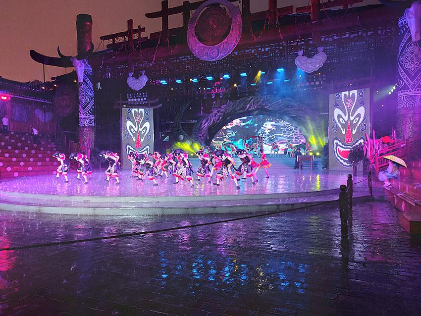 青春就是激情 西江千户苗寨景区《美丽西江》表演场的演员们,为游客们提供优质丰富的精神食粮,坚持在大雨中表演,只为让四方游客不留下遗憾,再辛苦也尽职尽责。