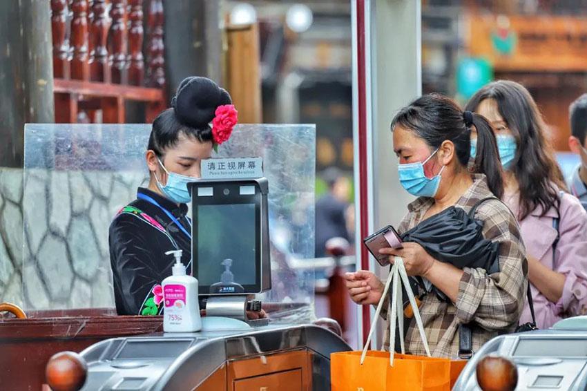 青春就是热爱 景区检票处,有一群年轻的票务工作人员他们热爱自己的工作,把每一名游客当作自己的家人,微笑引导游客快速通过检票口。
