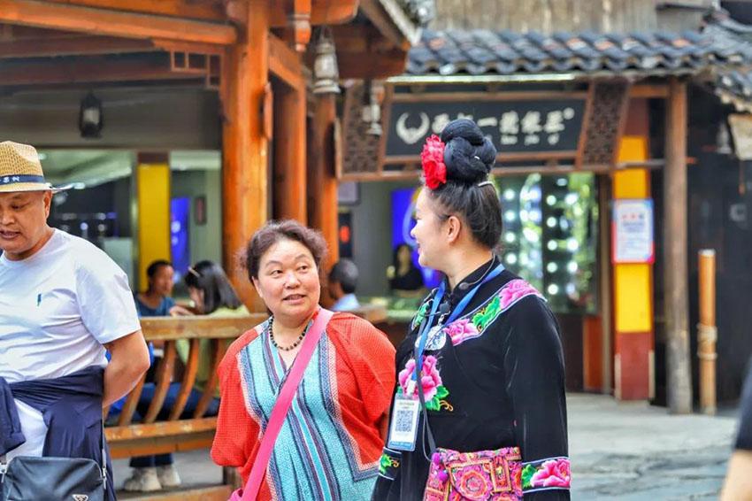 青春就是热情 西江千户苗寨景区一群90后的景区讲解员热情解答游客各类咨询。