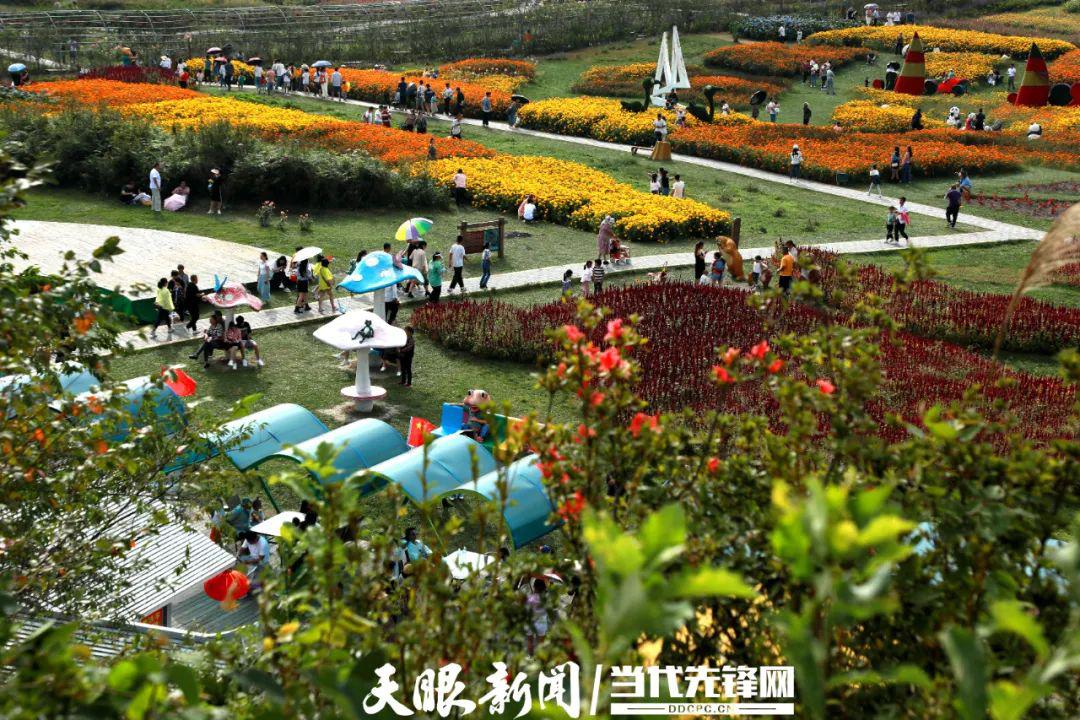 10月3日,百里杜鹃彝山花谷景区游客络绎不绝