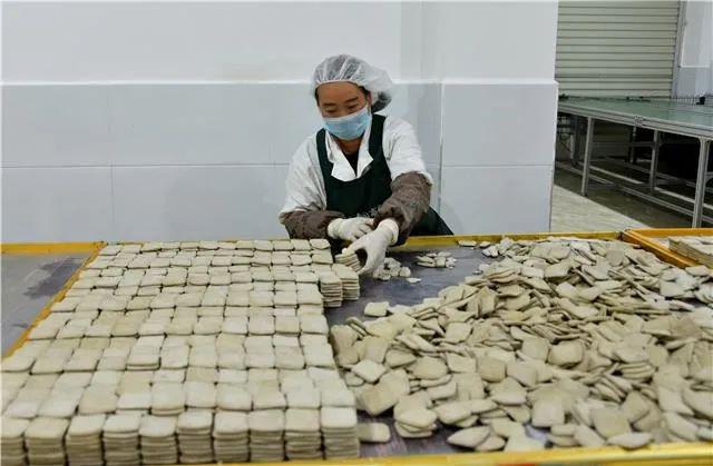 豆制品加工厂发展壮大的同时,也为当地村民提供就业岗位,有效缓解了当地的就业压力,提高了当地群众的经济收入。“从这个建厂以来我就来这里上班的,这里离家很近,又可以在家里照顾娃儿,不用外出去务工,工资也稳定,平常不加班时候都能做三四千块钱,多劳多得,加班了还高点,都是手上活,比较轻松。”正在加工豆腐的工作人员张静告诉记者。