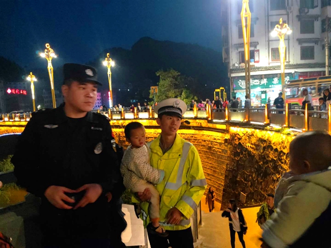 5月1日晚,1名4岁左右的小孩在镇远剧场与监护人走失,抽泣失措,执勤交警拭泪安慰,与特巡警一道,找到孩子的监护人,并用警车将其载到身边。5月2日晚,在盘龙桥执勤的交警袁祖道突然听见盘龙桥下有小孩的哭声,遂下桥询问,得知是小孩迷路回不了家后,袁祖道通知特巡警,由特巡警护送到家。
